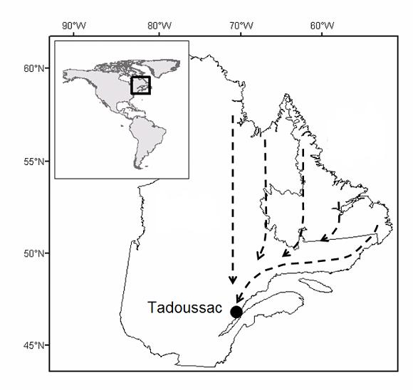 L’estuaire et le golfe du Saint-Laurent sont connus depuis longtemps pour influencer le comportement migratoire des oiseaux, principalement lors de la migration automnale. Dans le cas particulier de la rive nord du Saint-Laurent, à l’est de Tadoussac, les rapaces et les passereaux en déplacements diurnes, en provenance du nord du Québec et du Labrador, évitent une périlleuse traversée du golfe du Saint-Laurent et tendent à longer la côte nord du fleuve. L’emplacement des sites de suivi de l’OOT est donc stratégique car il permet d’étudier les populations d’oiseaux en migration qui se concentrent alors sur la côte, formant un corridor de migration qui se maintient jusqu’à Sainte-Anne-de-Beaupré, à l’est de la ville de Québec.