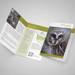 Cette activité offre également la possibilité de parrainer une nyctale pour une contribution d’un minimum de 60$ pour une Petite Nyctale ou 100$ pour une Nyctale de Tengmalm*. En tant que marraine/parrain, vous recevrez par courriel (comptez 20$ supplémentaires pour un envoi postal) :