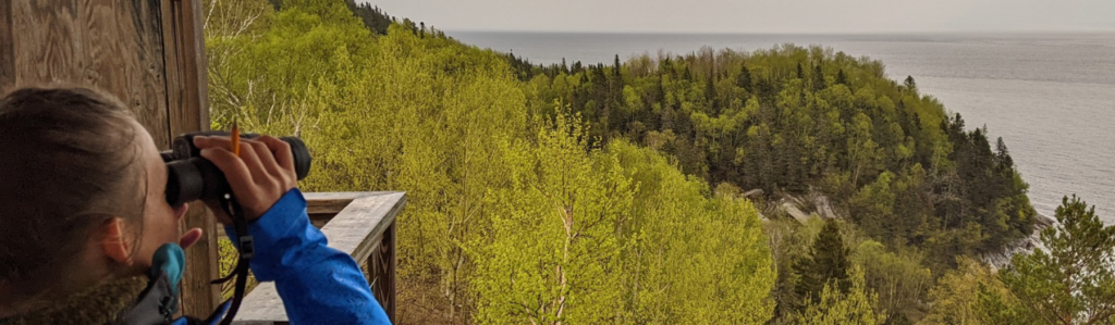 Located on the dunes of Tadoussac, the belvedere is a key vantage point for bird migration observation, both in the spring and in the fall. Historically, the main goal of the visual surveys was to count migrating raptors in the fall in order to assess population trends. Starting in 1996, counts have been broadened to include coastal birds, songbirds, and other closely related species. In 2018, a standardized survey started at the dock in Bergeronnes to document and better understand inverse migration, a phenomenon witnessed in the spring.